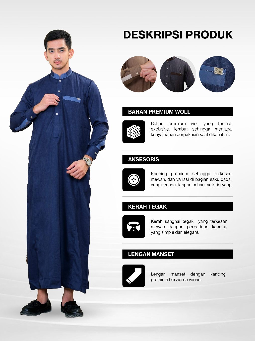 AL Haramain Jubah / Gamis Pria Dewasa Premium Wol (IGH 003) – Navy | Coklat Tua