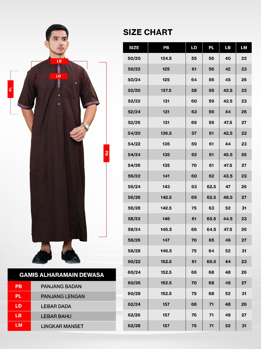 Panjang jubah (size 50-58):
