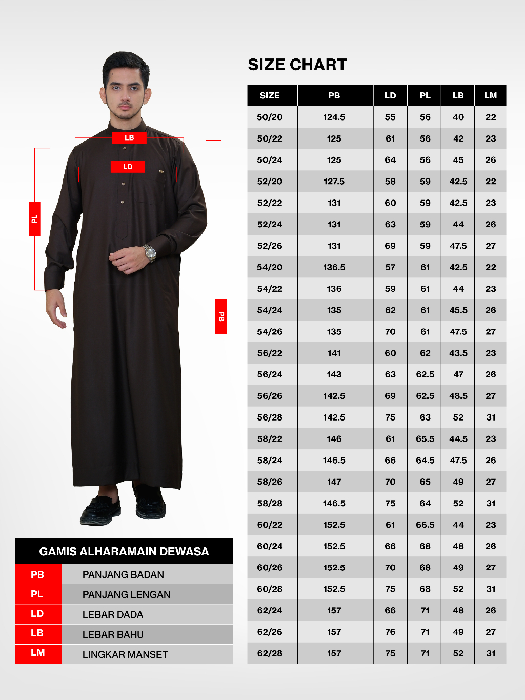 Panjang jubah (size 50-58):