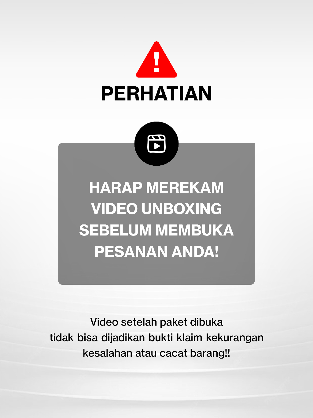 • Komplain kekurangan barang / barang cacat mohon sertakan bukti yang lengkap (wajib mengirimkan video unboxing, nomer resi, dan nomer pesanan)