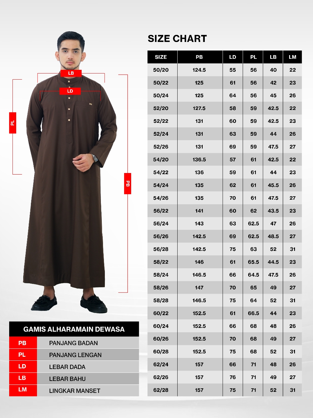 Panjang jubah (size 50-58):