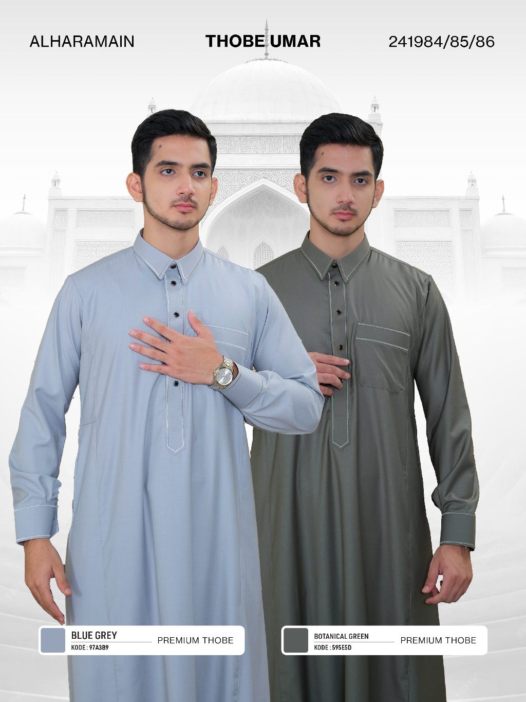 AL Haramain Series Semi Wol Thobe Umar Jubah / Gamis Pria Dewasa (241984/85/86) – Biru Gelap | Hijau Lumut