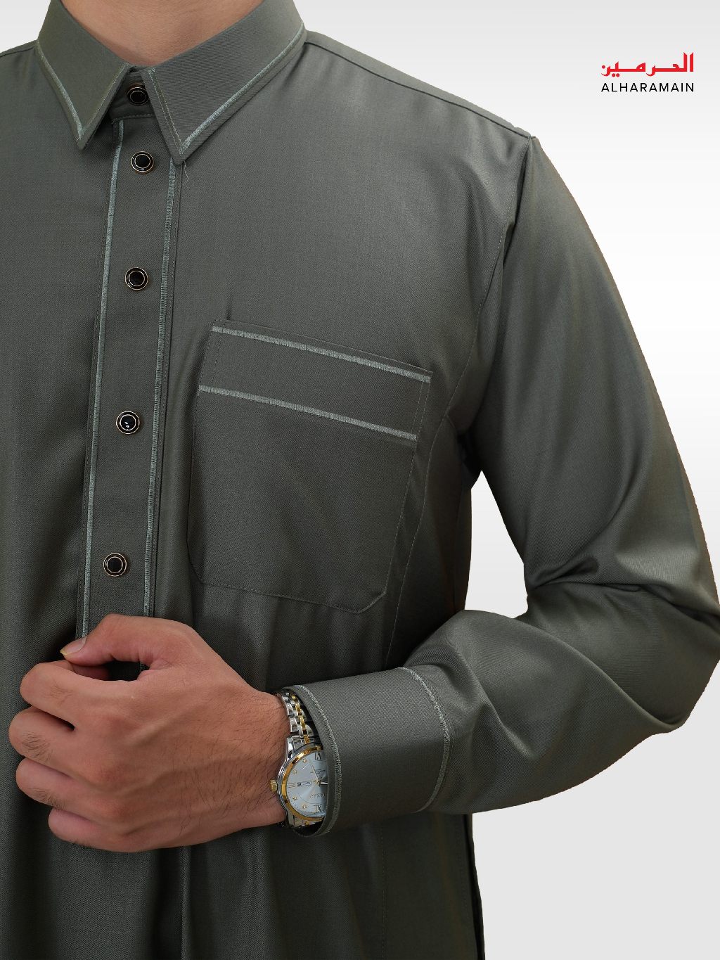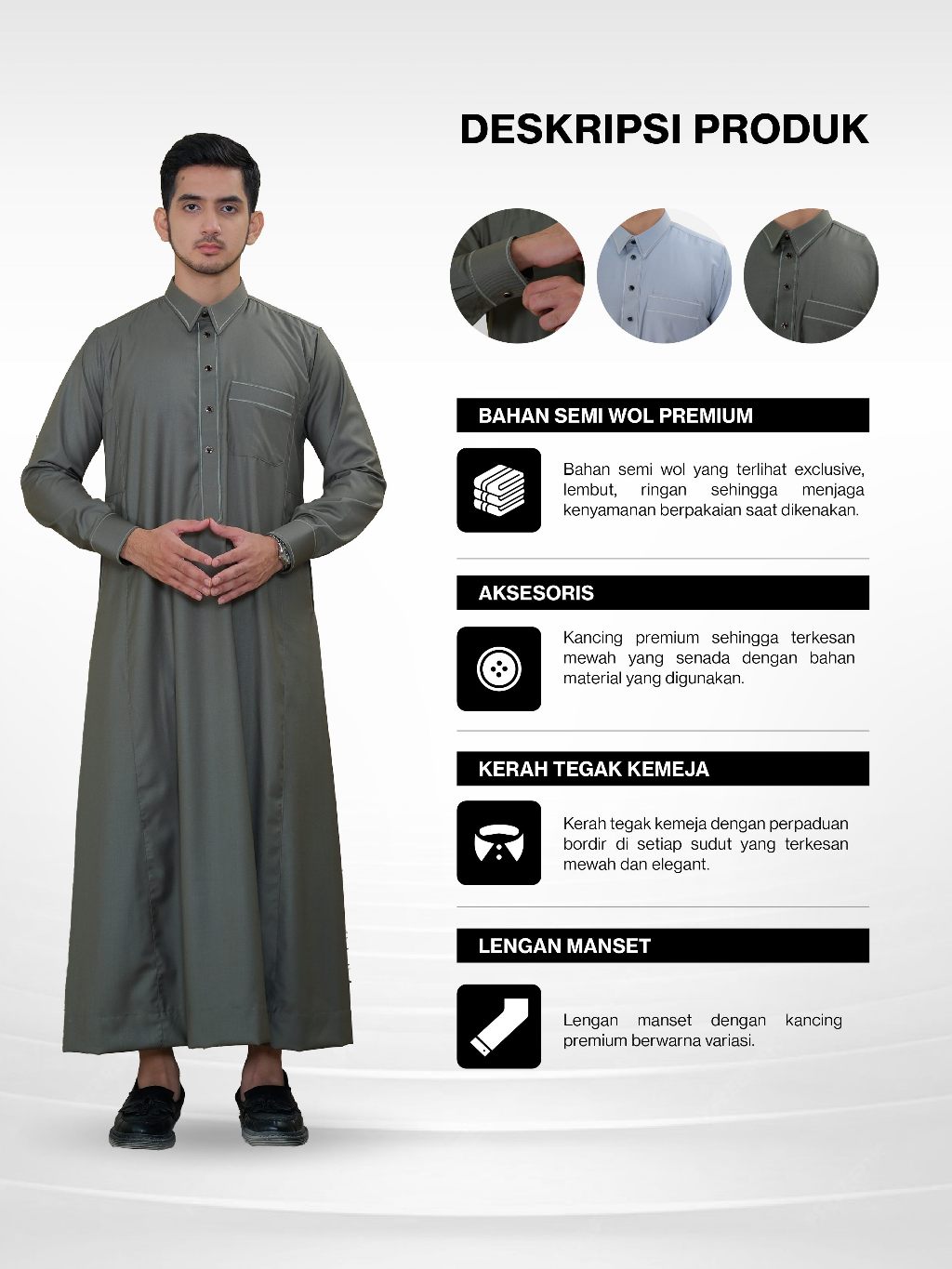 AL Haramain Series Semi Wol Thobe Umar Jubah / Gamis Pria Dewasa (241984/85/86) – Abu Kehijauan | Cream